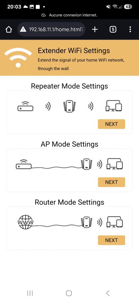 Cliquez sur **Mode Répéteur** pour accéder à la page de recherche de réseau.