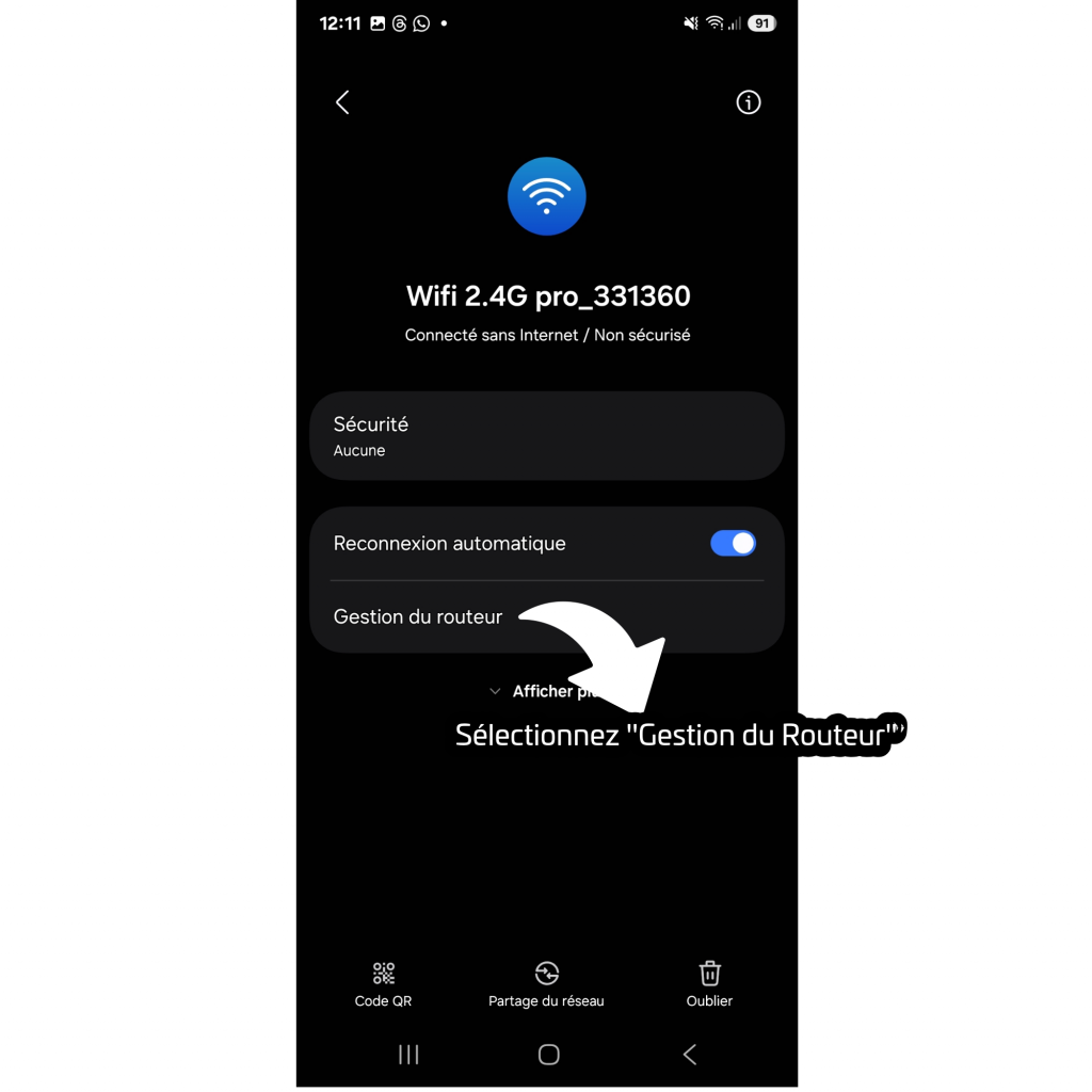Sélectionnez »Gestion du Routeur »