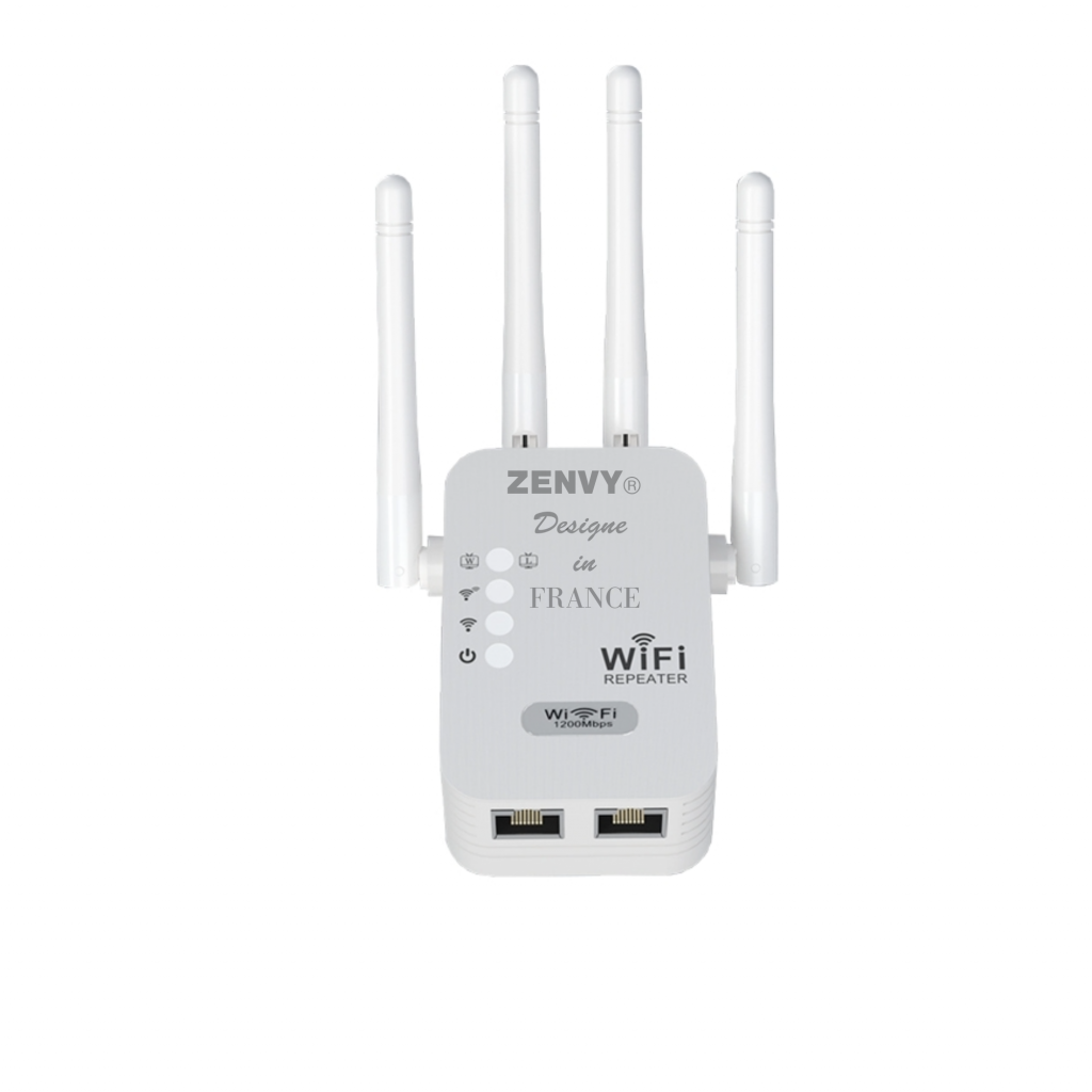 – Repeteur WiFi 1200Mbps ZENVY (Françase)puissant,Amplificateur WiFi,répéteur WIF,4 Antennes ,2 Ports LAN,Mode Répéteu&Routeur&AP,repeteur WiFi Exterieur de 300m² (model 1200), Facile à Installer en Francais+VIDEO
