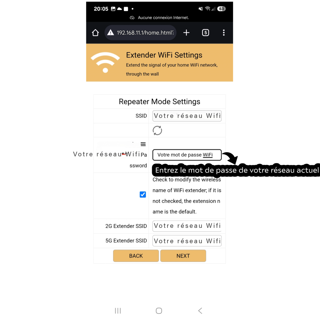 du mode relais (le mot de passe du Wi-Fi étendu est par défaut le même que celui du routeur).