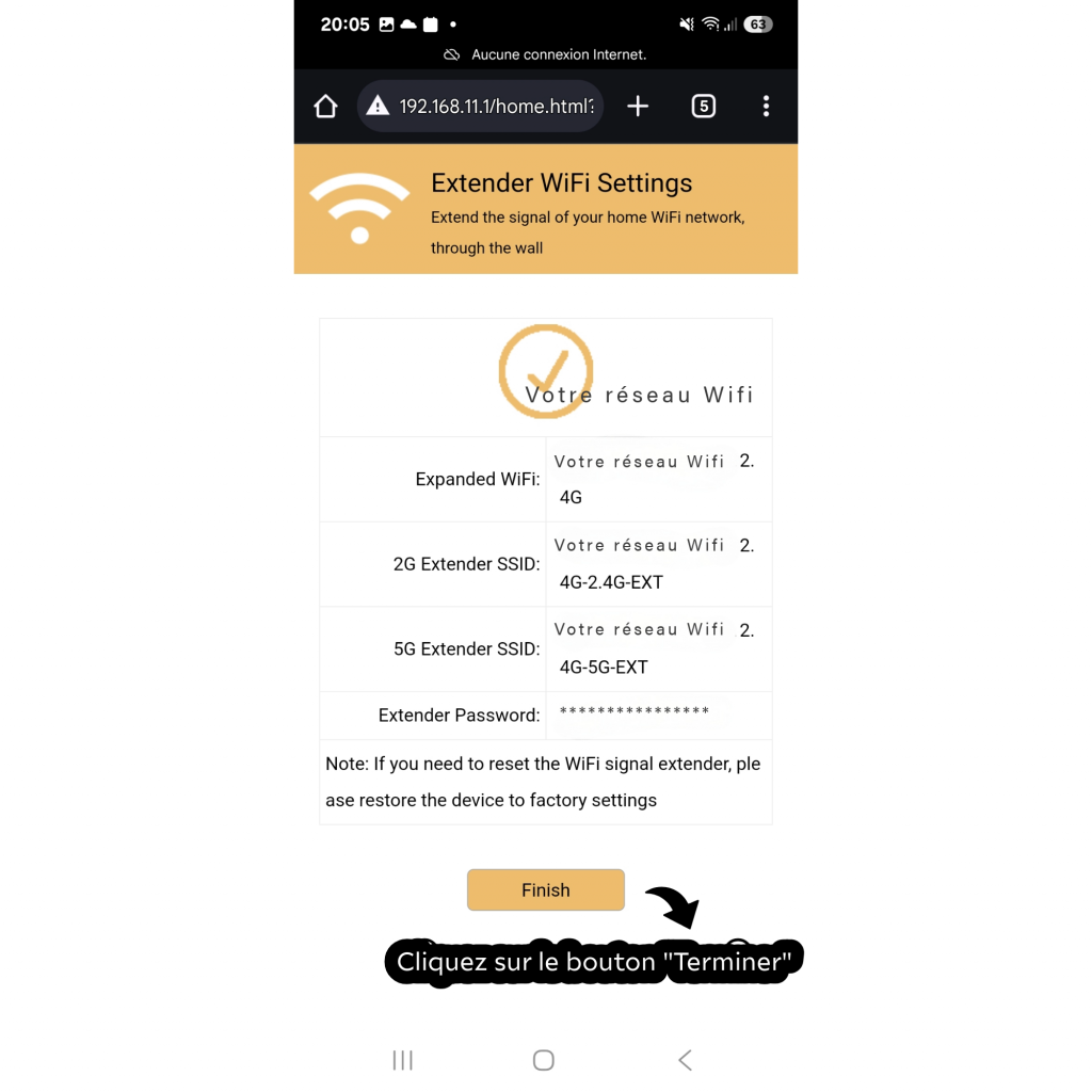 Étape 5 : La configuration du mode Répéteur est désormais terminée.